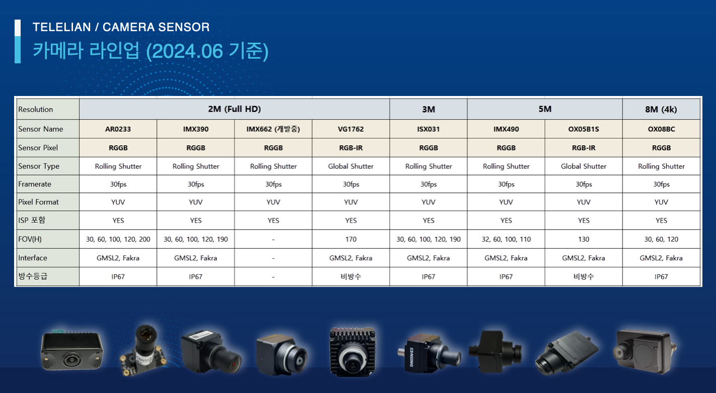 차량용 ADAS 카메라는 이미 다양한 환경에서 검증을 거친 제품군이다. 역광, 강한 태양광, 급격한 조도 변화 등에서 안정적인 성능을 보여준다. 텔레리안이 기존에 공급해온 카메라 라인업만 봐도, 이런 카메라들이 왜 차량용 및 야외 로봇에 많이 사용되는지 이해할 수 있다.